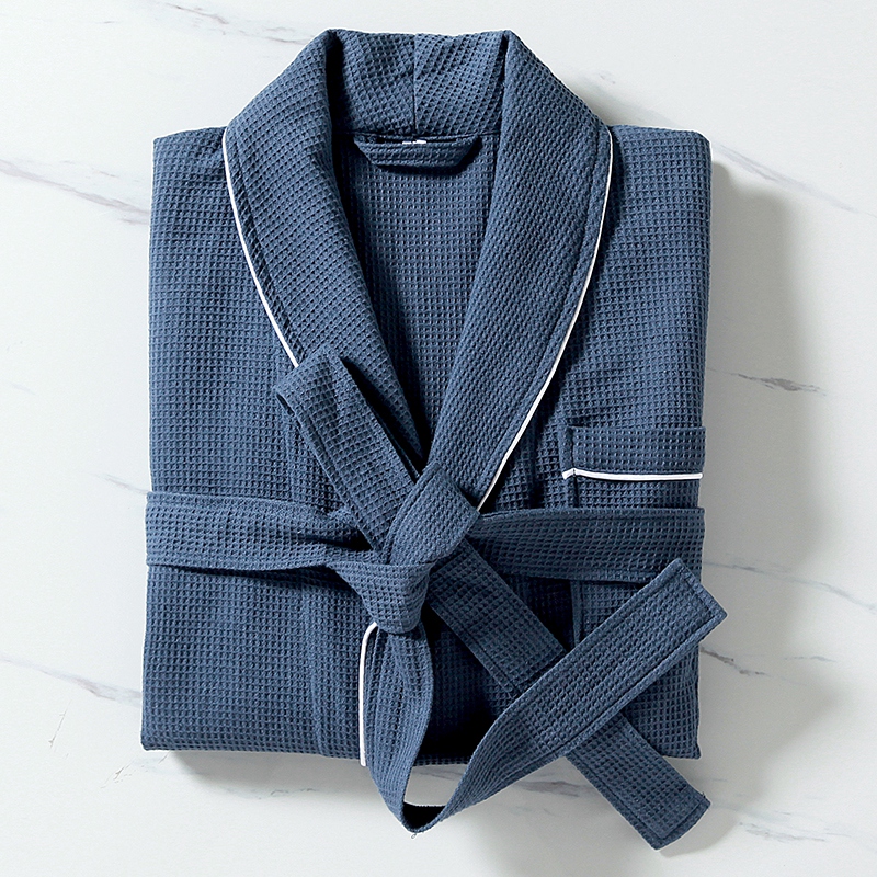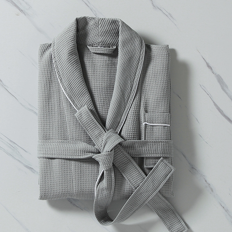 Kotiin / Tuotteet / Hotelli kylpytakki / 100 % puuvillaa Pieni vohvelihuivi kaulus Piping kylpytakki